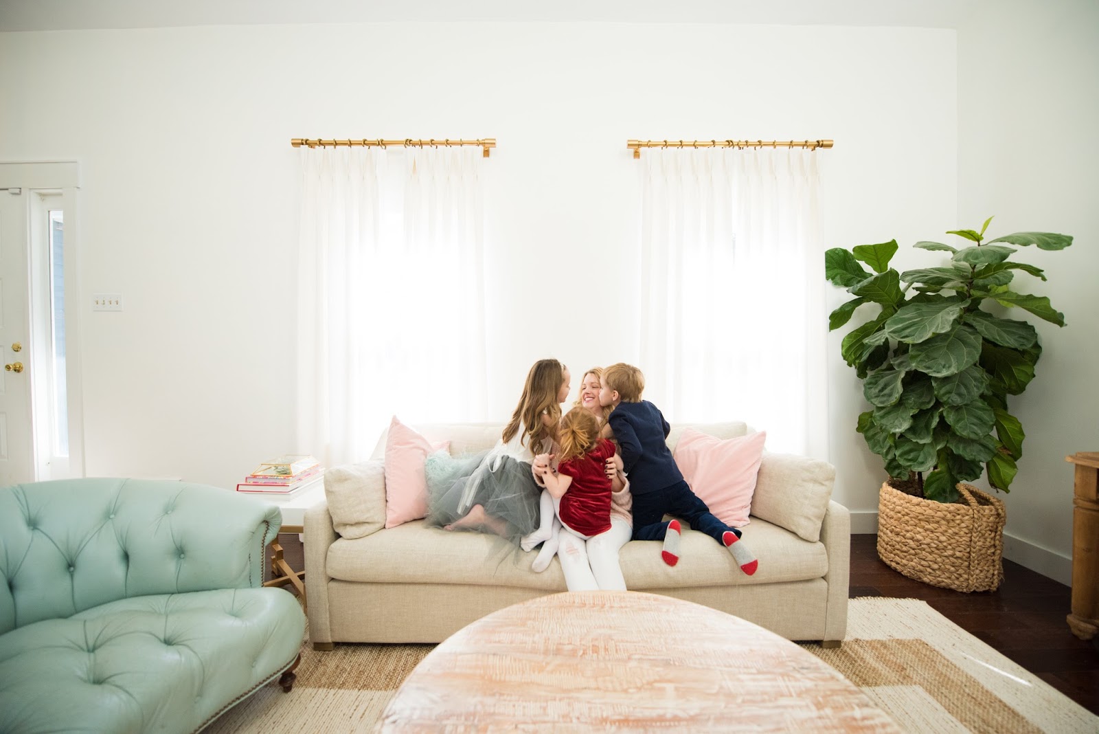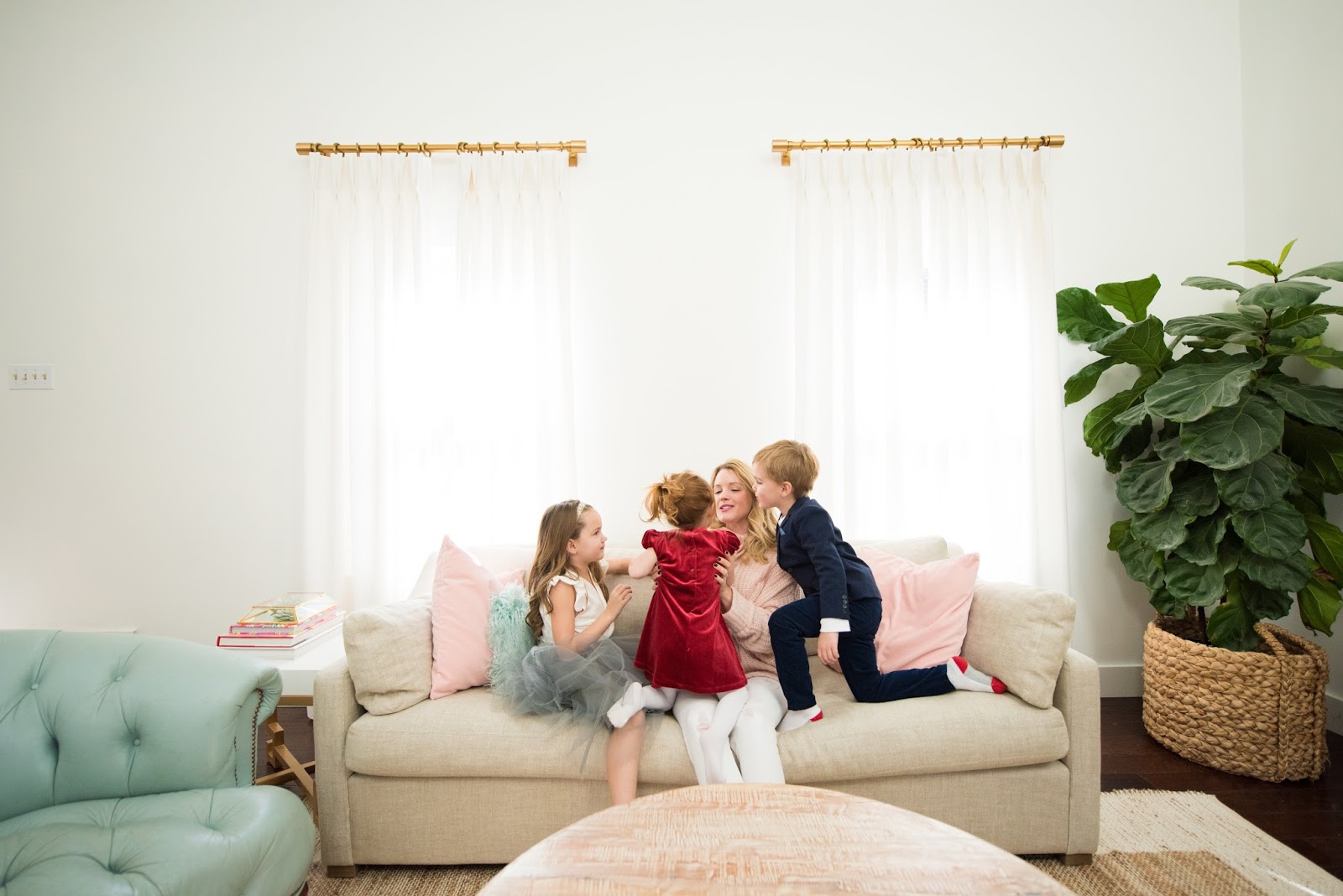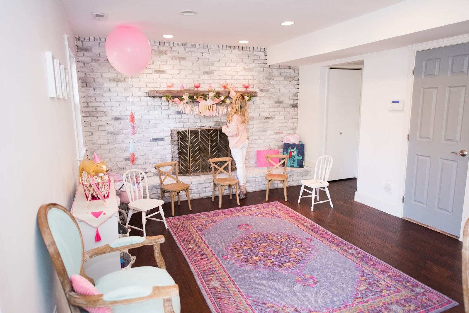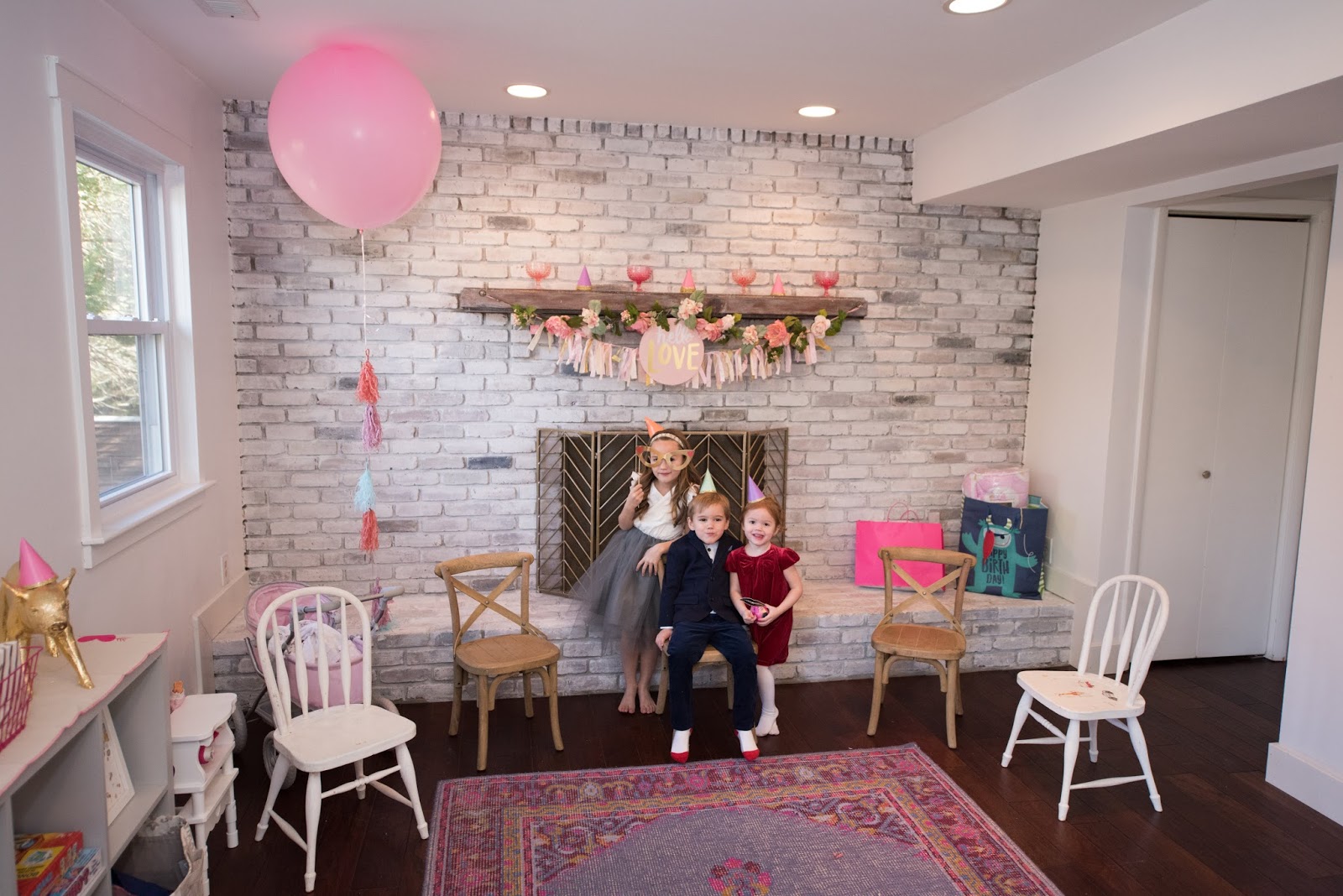 This week I wanted to share a little party I threw for my youngest, London. She is turning 3 next week and since February is such a crazy month for us, I decided to combine her birthday party with Valentines Day. Target had so many cute decorations this year that it really came together pretty quickly! I already had most of the Valentines decorations up (you can read that post here) so all that was left to do was put together a kid friendly menu and set up the cookie decorating station. Since I knew there would be a few little ones attending, I decided to clear to playroom so they had room to roll and get diapers changed:) Plus it was the perfect floor space for the short lived hot potato game we attempted! The big kids had fun taking pictures with our silly photo props, decorating heart cookies and consuming way too much sugar. All pictures were taken during the quiet before the storm by the lovely Tracy Marshall... and when I say storm I really mean fire! I swear every year we have something catastrophic happen at a birthday party. And this year takes the cake... we actually had a mini house fire when all the guest were arriving! A hand towel in the bathroom had fallen into a candle that I had lit on the sink. The whole entire turkish towel was burnt to a crisp by the time I ran in with the fire extinguisher. Luckily no one was hurt or too spooked by it so we aired out the house and kept the party rolling. It just goes to show that all the party planning in the world is never enough when it comes to throwing kid parties. So please enjoy all the pretty pictures below knowing that my life is and always will be complete chaos. But as long as the kids are happy I'm not complaining:) Thanks for reading and Happy 3rd Birthday to London Joan!