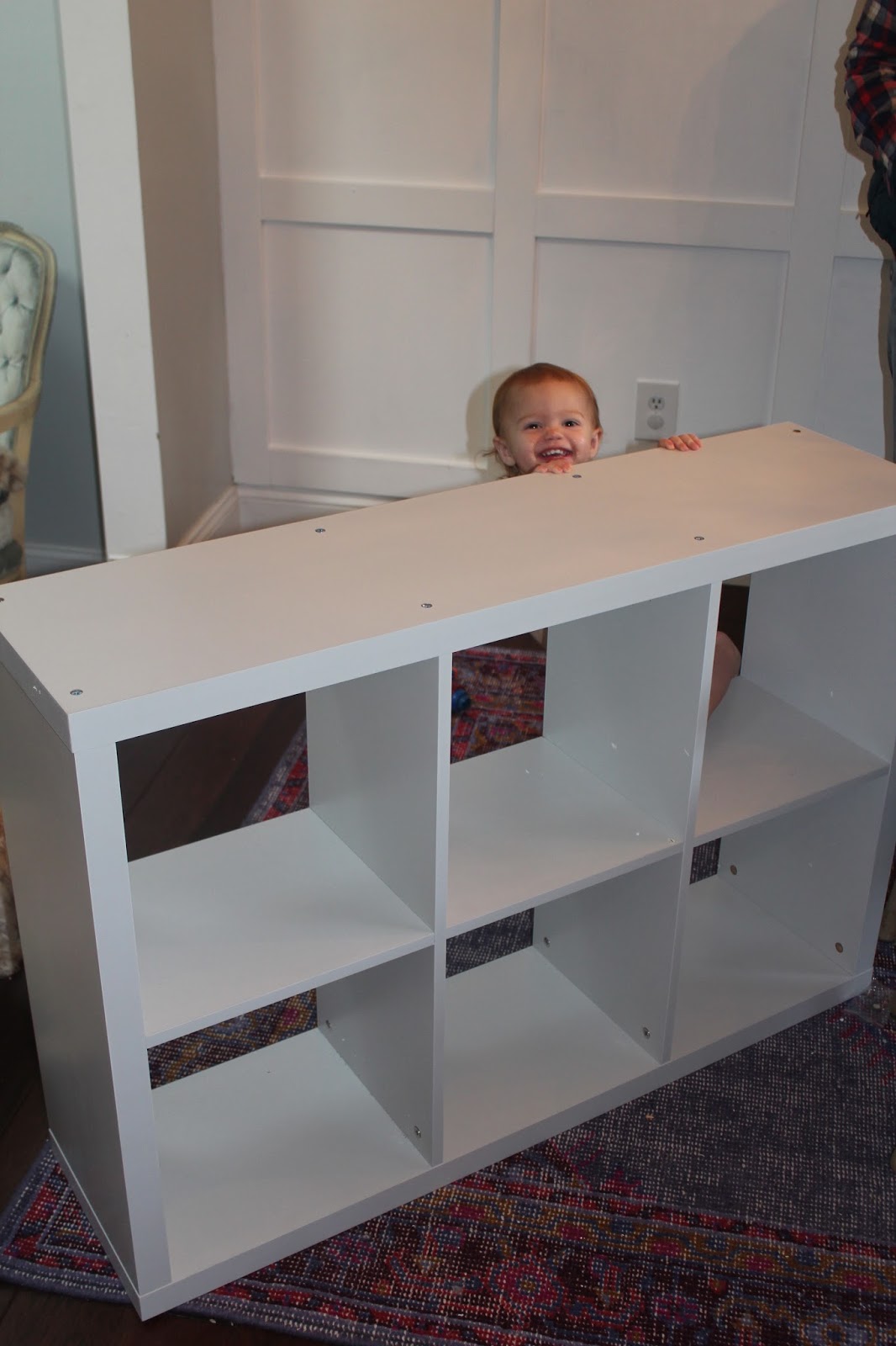 At least they are excited about this super cool bookcase. London thinks its her own personal ladder... Don't worry I plan on securing it to the wall so this little monkey stays safe.