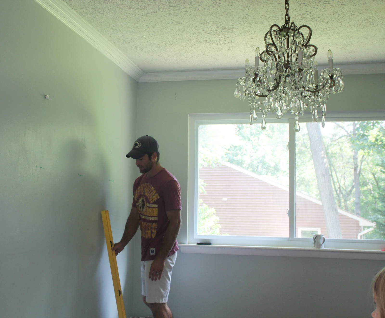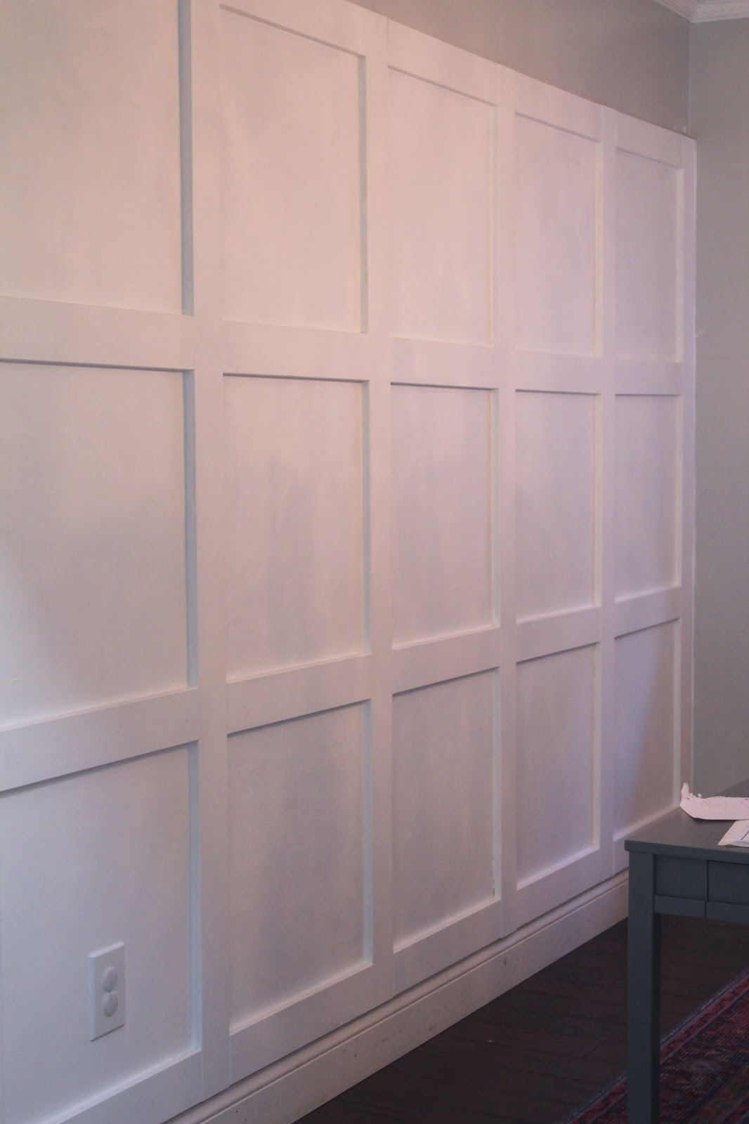 Step 2: Nail & SealOnce all the pieces were measured and cut we obviously had to nail them in place. My only tip for this step is to resist the urge to nail the crap out of your wall. You want to be able to cover all the nail holes with caulk without the wall looking to banged up.Step 3: Caulk and SandNo matter how well you measure and cut you are bond to have some seams that are further apart than others. Especially if your a newbie at this whole DIY thing. But fear not caulk can hide all errors. Even if you don't have big old gaps in your squares, it is safe to caulk them just to make sure things don't fall out of the wall onto your child's head.Step 4: PaintMy husband thought I was seriously cray cray when he came home with white paint that was "THE WRONG SHADE OF WHITE!" Yes there are literally thousands of whites on the market right now. I wanted a cool white since the rest of the room was gray. I went with Benjamin Moore Chantilly Lace and it looks amazing day and night.